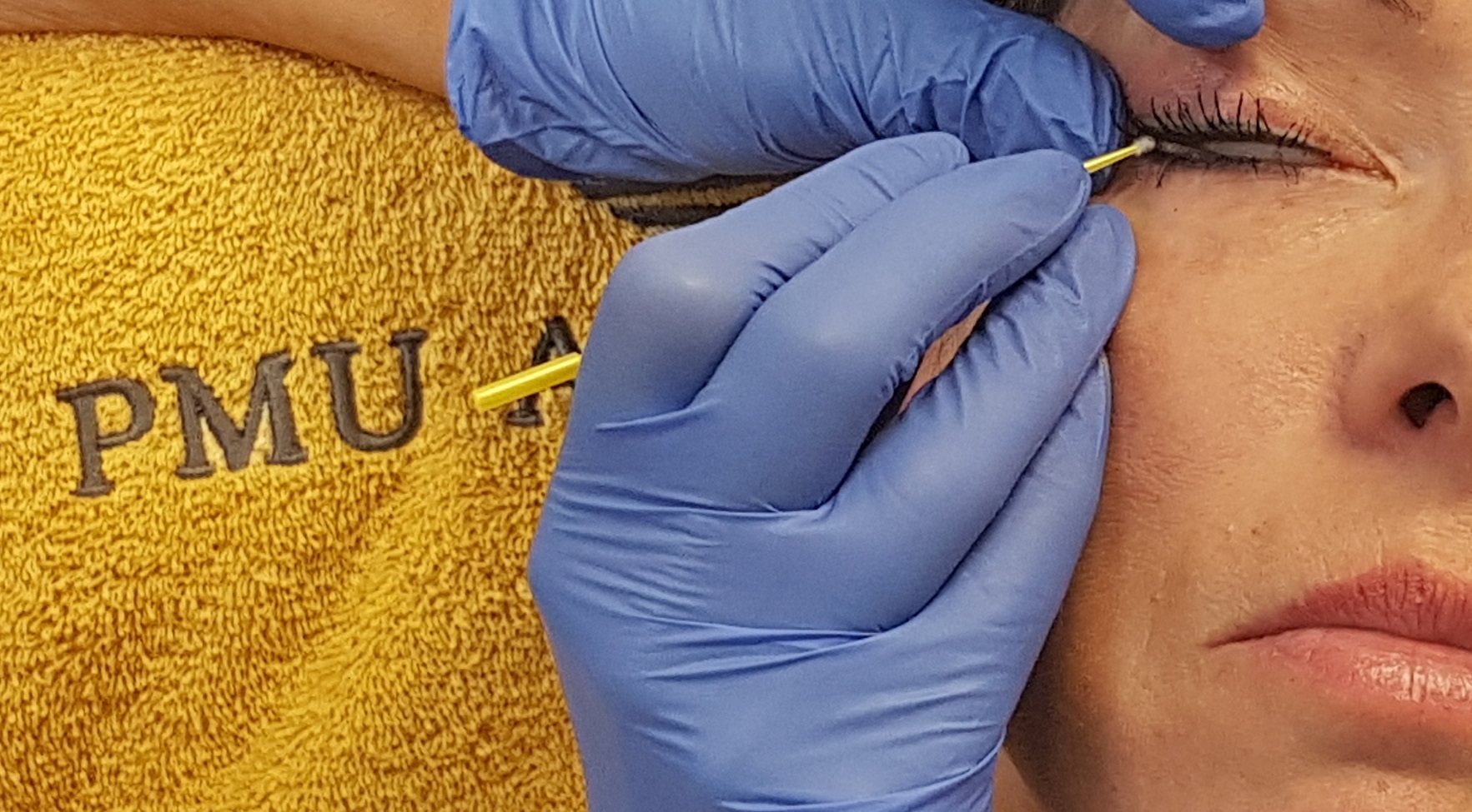 Bij een eyelinerbehandeling is het belangrijk dat de specialist de huid goed spant. Het spannen dient ervoor dat het (kleine) naaldje makkelijker de huid in gaat. De huid van de ogen is erg dun, daarom kan er oppervlakkig gewerkt worden.